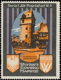Sachsenhausen, Serie Alt-Frankfurt No. 6, Größe/Zustand: 6x5 , guter Zustand, Original alte Reklamemarke die seinerzeit für die Werbung benutzt wurde