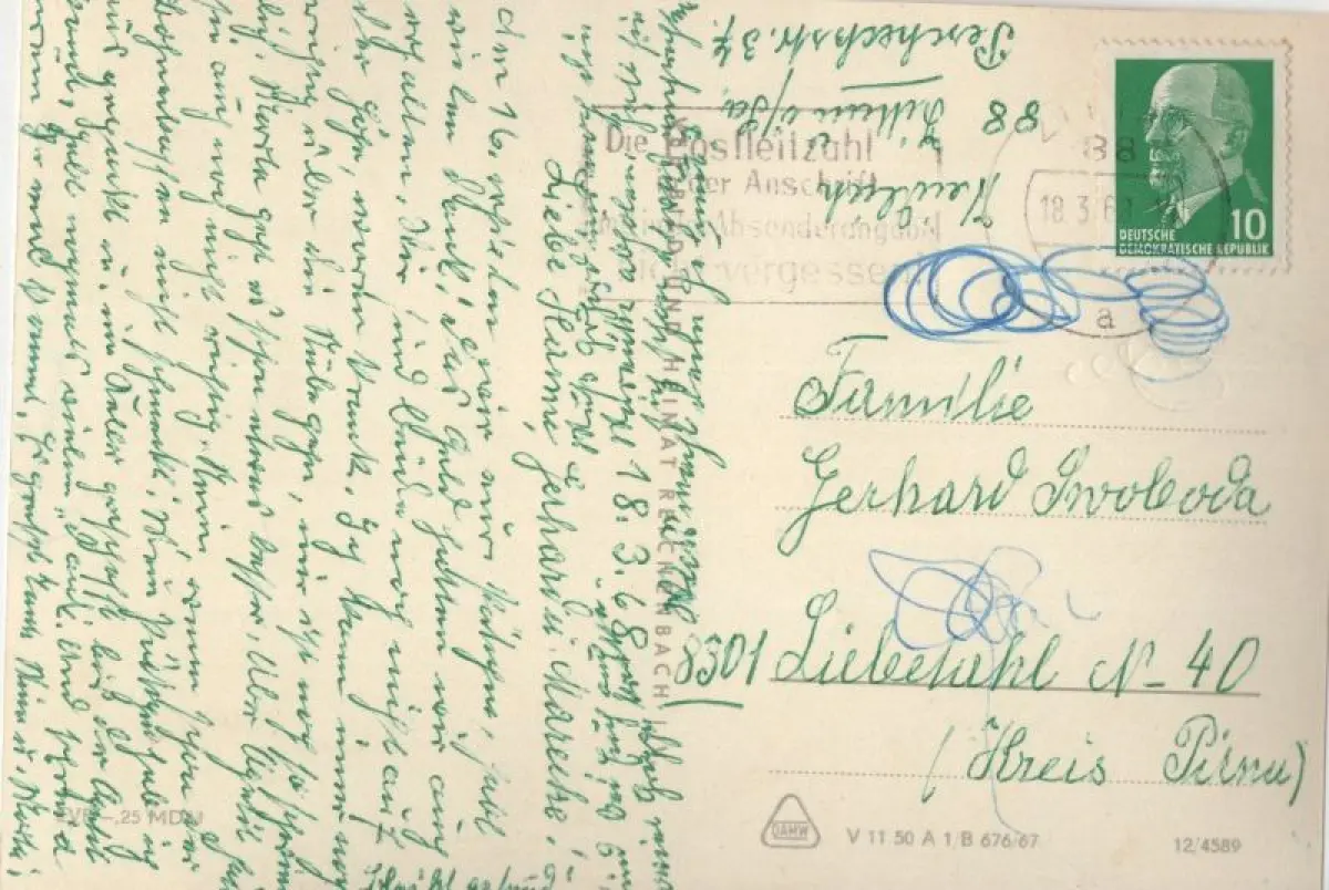 stark durchgedrückte SchriftPostleitzahl:02797 (neu) / O 8806 (alt)