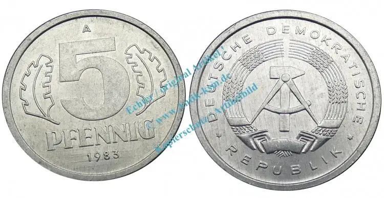 Kursmünze Deutsche Demokratische Republik , 5 Pfennig Stück 1983 ADatum : 1983  ,  Prägeort : Berlin  ,  Jäger : 1509