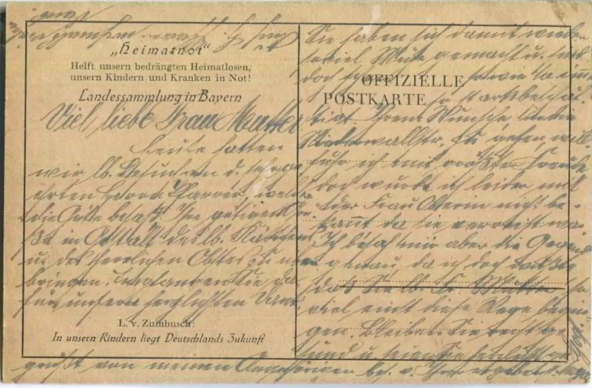 L. v. Zumbusch - Heimatnot - Landessammlung in Bayern - Rückseite beschrieben (G1750) *