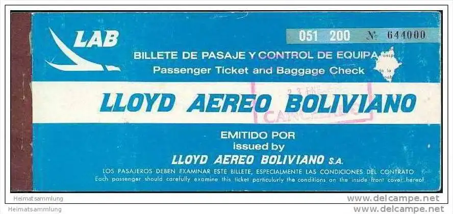 LAB - Lloyd Aereo Boliviano 1975 - La Paz Asuncion - Gebrauchsspuren (E65260)