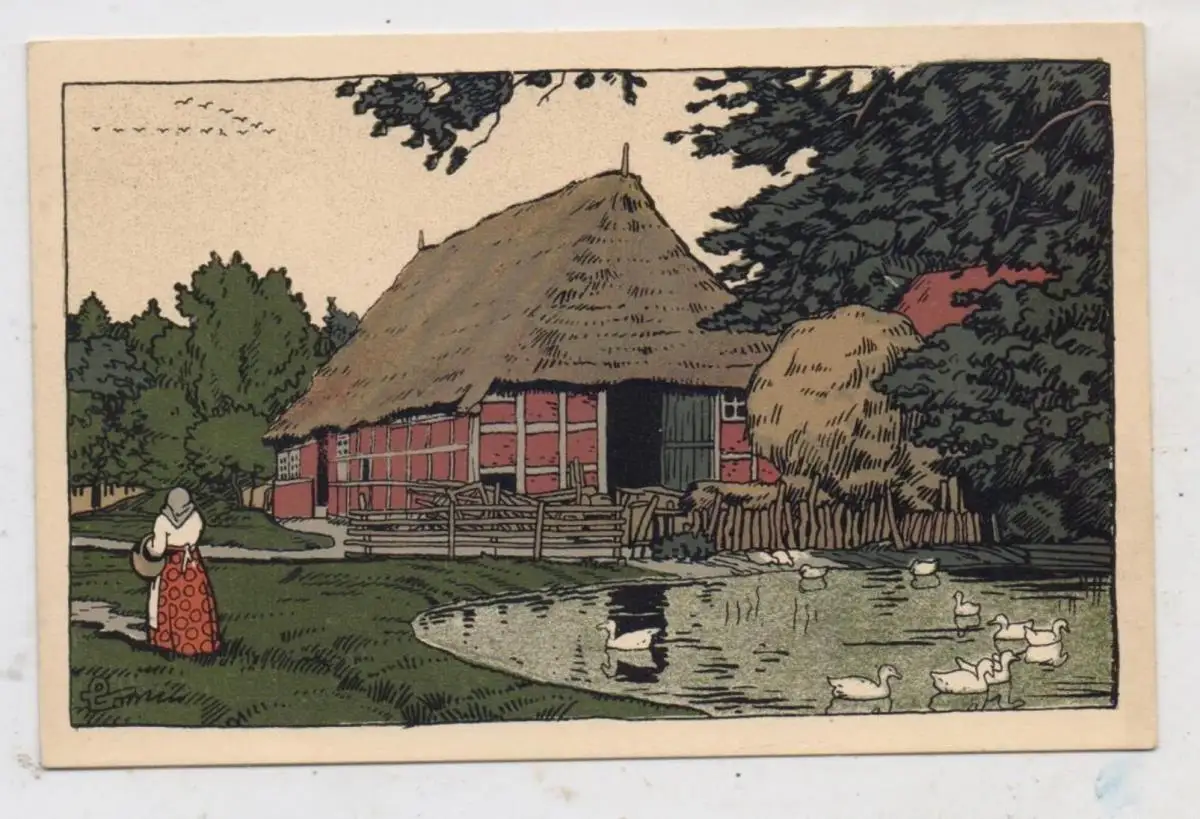 LANDWIRTSCHAFT - Dorfidyll in der Lüneburger Heide, Steindruck
