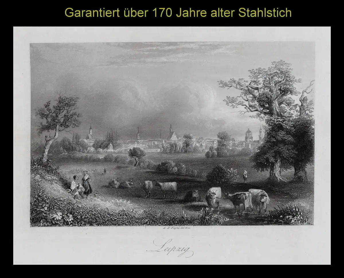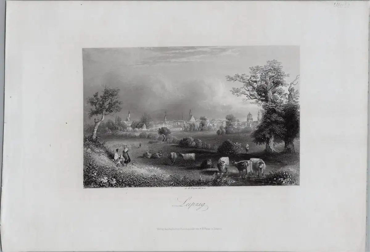 LEIPZIG: Ansicht aus der Ferne. Originaler Stahlstich um 1850