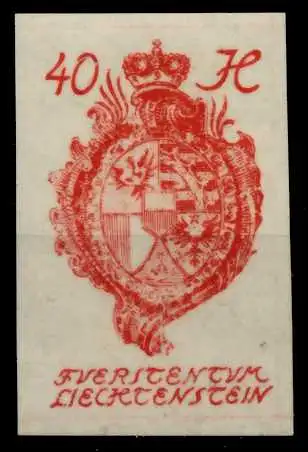 40 H Wert der Freimarkenausgabe von 1920 (Landeswappen oder Burg Vaduz)