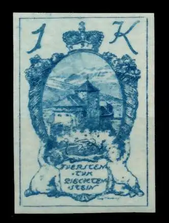 1 Kr Wert der Freimarkenausgabe von 1920 (Landeswappen oder Burg Vaduz)