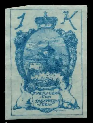 1 Kr Wert der Freimarkenausgabe von 1920 (Landeswappen oder Burg Vaduz)