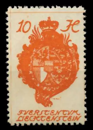 10 H Wert der Freimarkenausgabe von 1920 (Dorfansichten, Fürst oder Wappen von Vaduz)