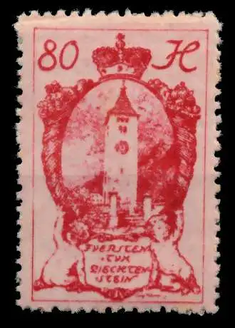 80 H Wert der Freimarkenausgabe von 1920 (Dorfansichten, Fürst oder Wappen von Vaduz)