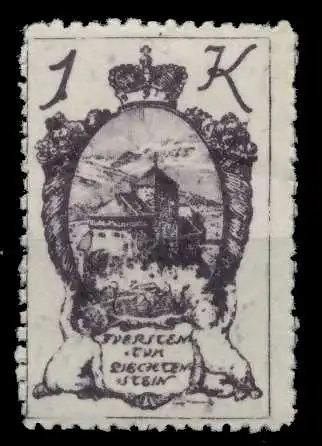 1 Kr Wert der Freimarkenausgabe von 1920 (Dorfansichten, Fürst oder Wappen von Vaduz)
