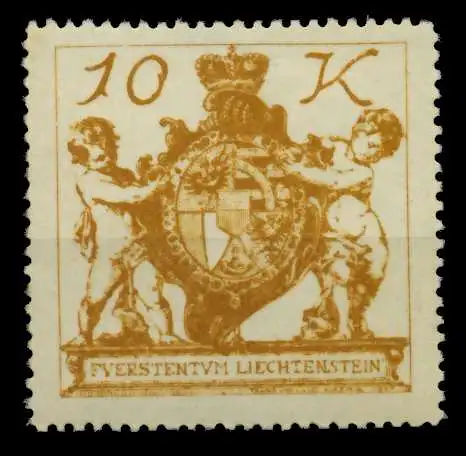 10 Kr Wert der Freimarkenausgabe von 1920 (Dorfansichten, Fürst oder Wappen von Vaduz)