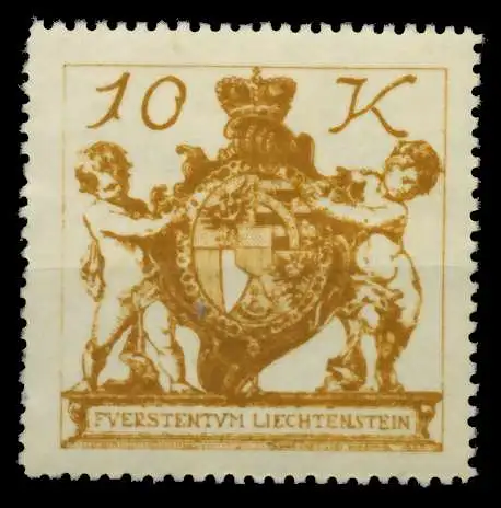 10 Kr Wert der Freimarkenausgabe von 1920 (Dorfansichten, Fürst oder Wappen von Vaduz)