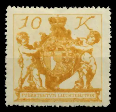 10 Kr Wert der Freimarkenausgabe von 1920 (Dorfansichten, Fürst oder Wappen von Vaduz)