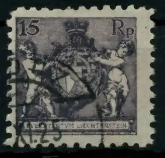15 Rp Wert der Freimarkenausgabe von 1921 (Landeswappen) in Zähnung A