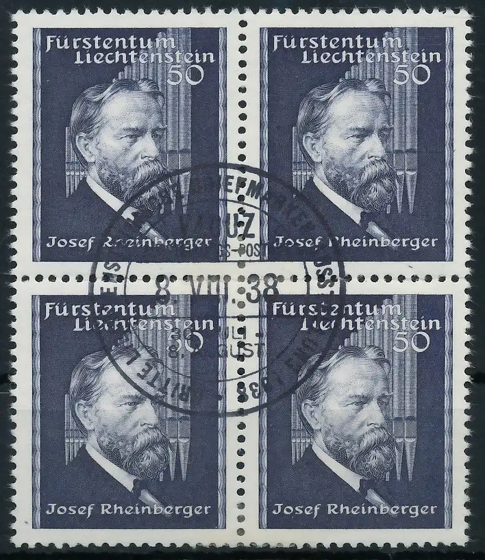 LIECHTENSTEIN 1938 Nr 170 zentrisch gestempelt VIERERBLOCK 13953A