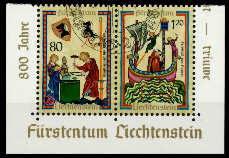 80 Rp. + 1,20 Fr. waagrechter Zusammendruck aus der Block-Ausgabe Minnesänger (MichelNr.: 8, 529, 530)