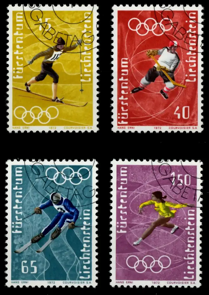 Ausgabe Olympische Winterspiele Sapporro 1972, mit Versandstellenstempel in irgend einer Ecke, mit Versandstellenstempel in irgend einer Ecke