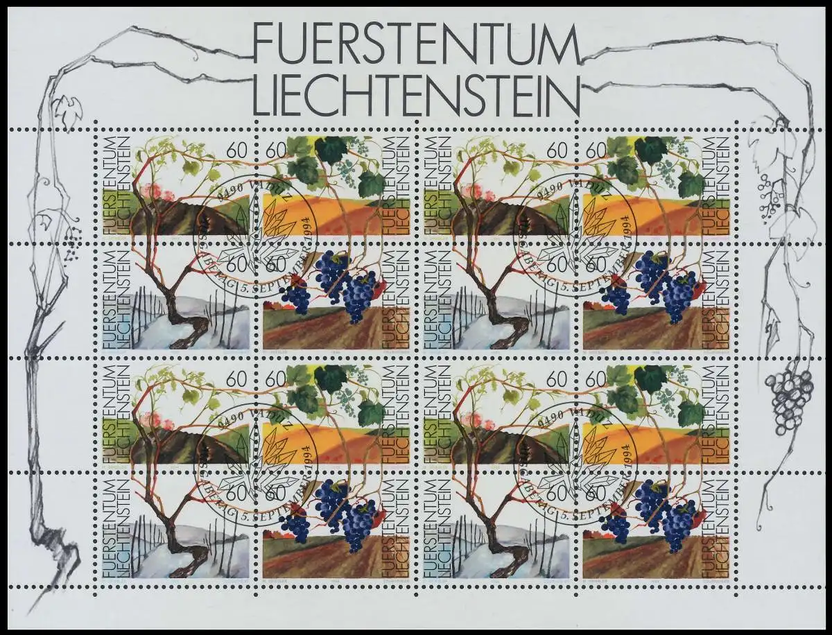 Zusammendruck-Kleinbogen der Nummern 1089, 1090, 1091, 1092. Die Weinrebe in den vier Jahreszeiten. (MichelNr.: )