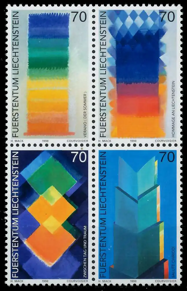 Kategorie 2: West-Europa, Liechtenstein, Zusammendrucke Liechtenstein, 1998 Kunst ZD FL