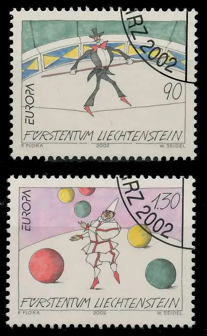 Europa Gemeinschaftsausgabe CEPT 2002 - Zirkus mit aufgedrucktem Stempel der Versandstelle in einer Ecke