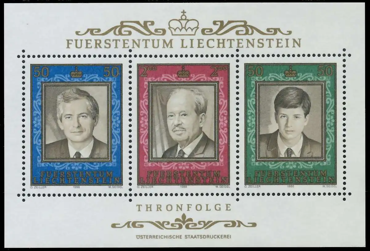 Blockausgabe 50 Jahre Regentschaft von Fürst Franz Josef II. (MichelNr.: 942, 943, 944)
