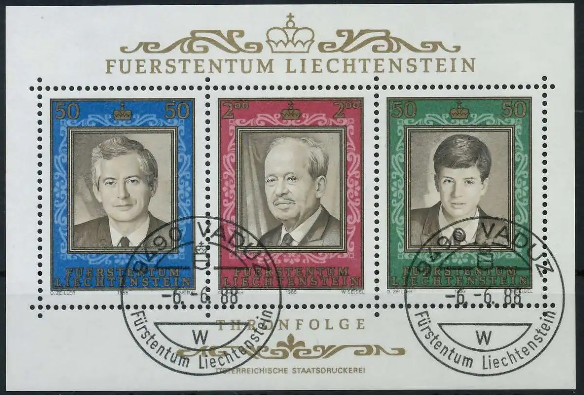 Blockausgabe 50 Jahre Regentschaft von Fürst Franz Josef II. (MichelNr.: 942, 943, 944)