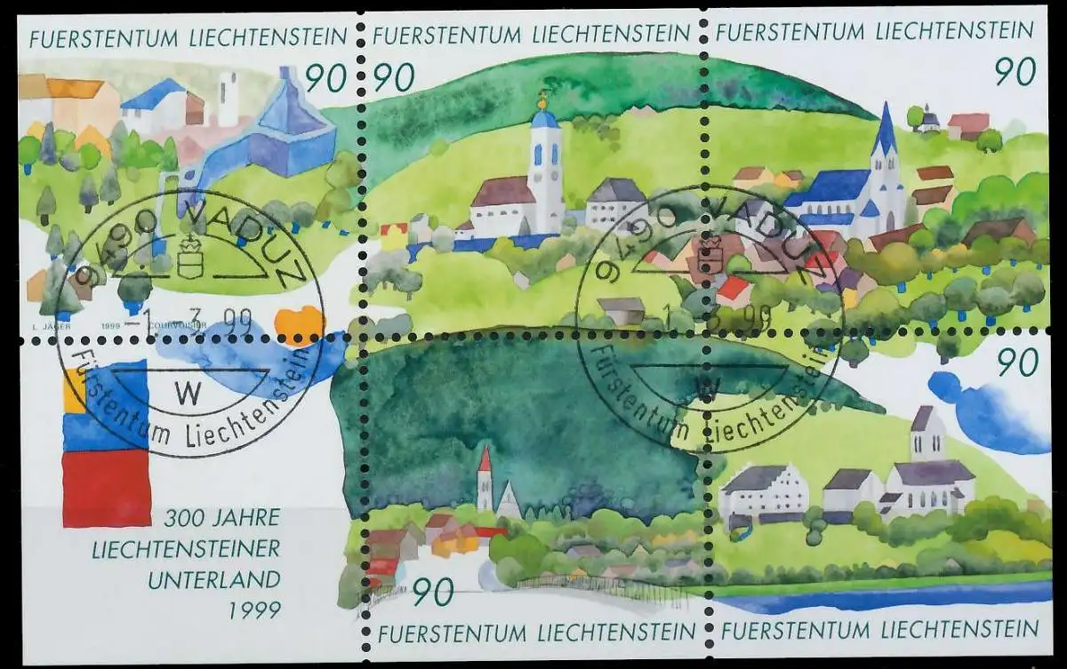 Blockausgabe 300 Jahre Liechtensteiner Unterland (MichelNr.: 1195, 1196, 1197, 1198, 1199)