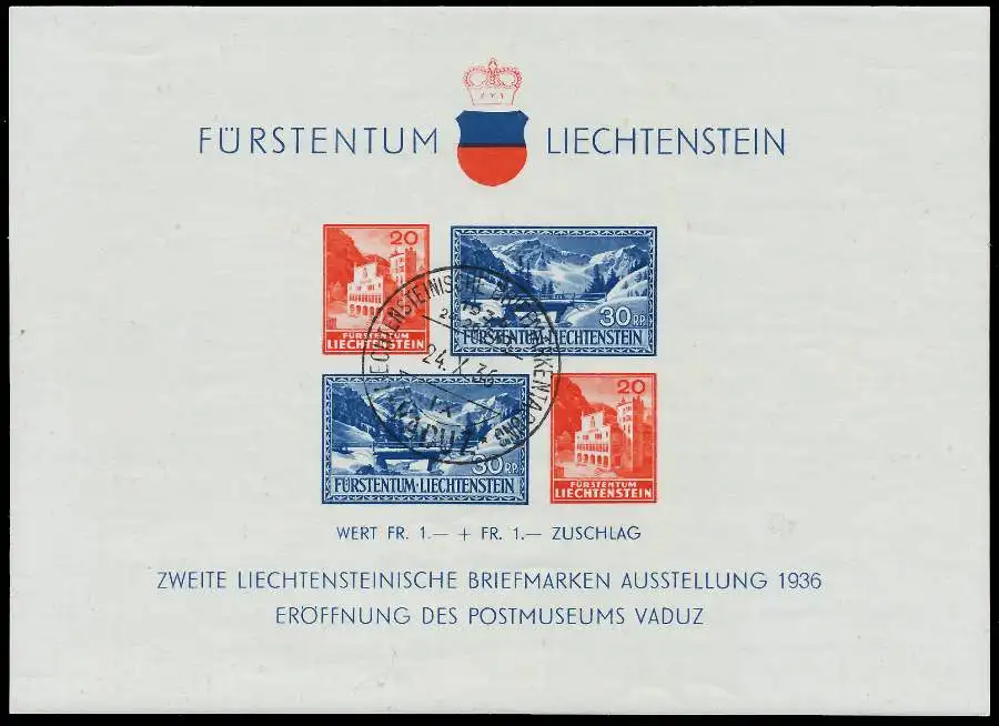 Blockausgabe, Eröffnung des Postmuseums und der 2. Briefmarkenausstellung in Vaduz (MichelNr.: 151)