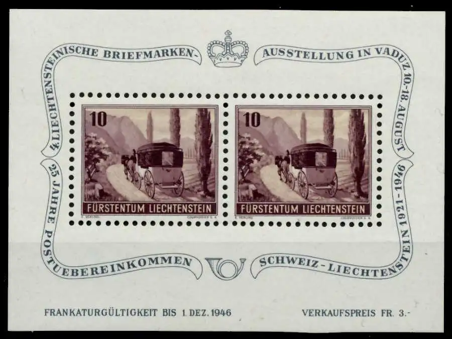 Blockausgabe zur 4. Liechtensteinischen Briefmarkenausstellung in Vaduz