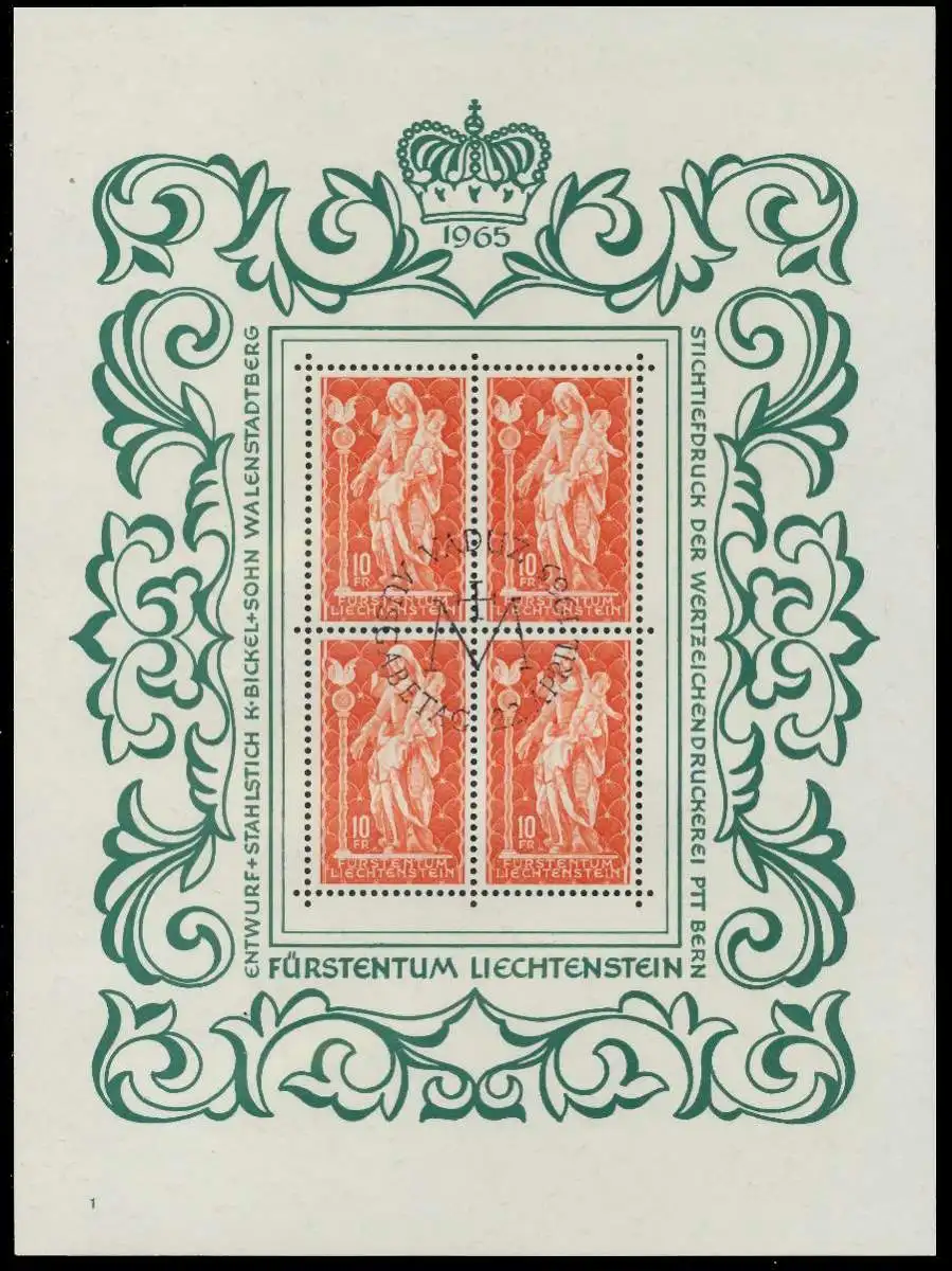 10 Fr. Freimarkenausgabe Madonna von Schellenberg im Kleinbogen, ESST, Formnummer 1