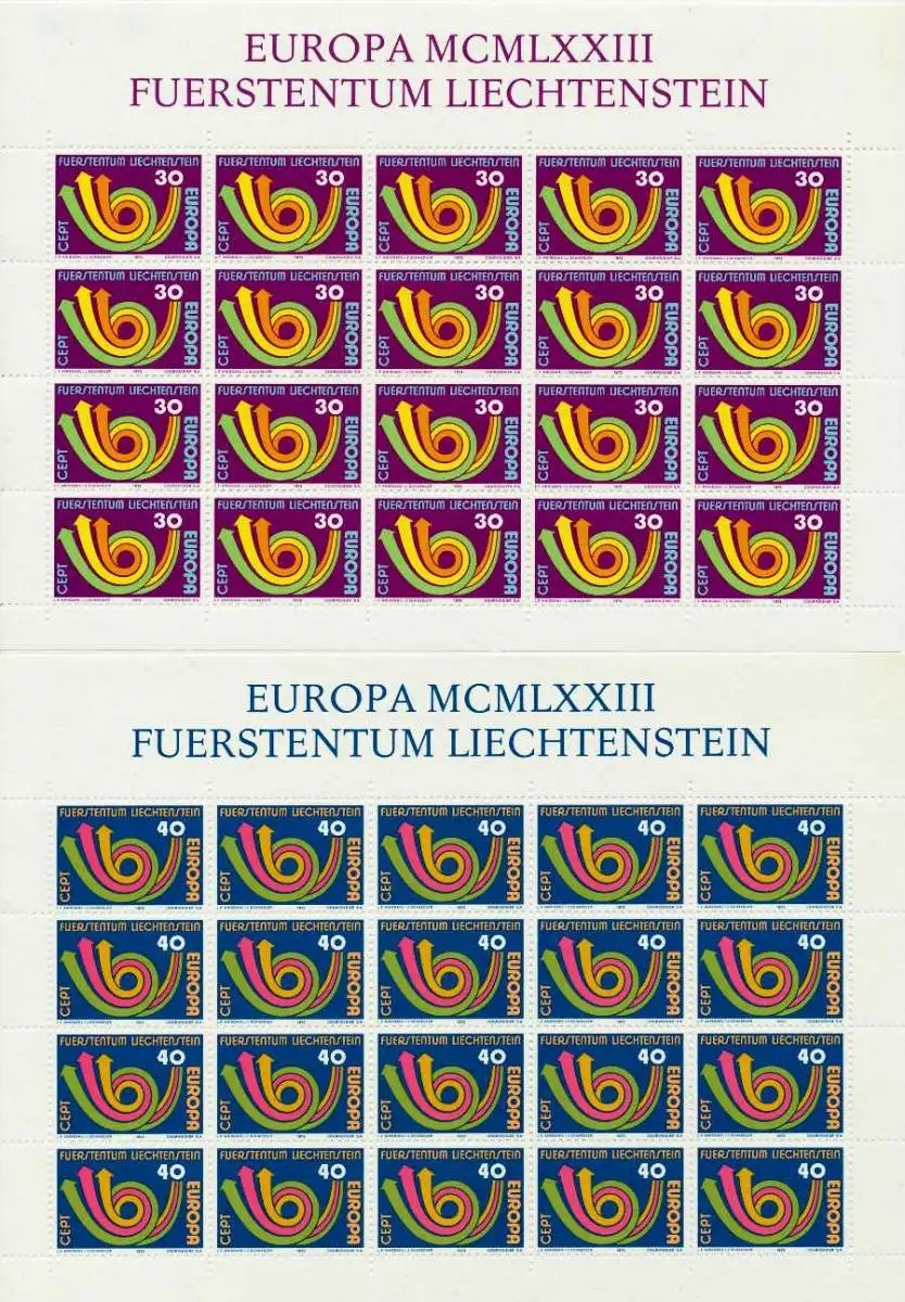 Ausgabe Europa 1973 im kpl. Kleinbogen (2 Bogen)