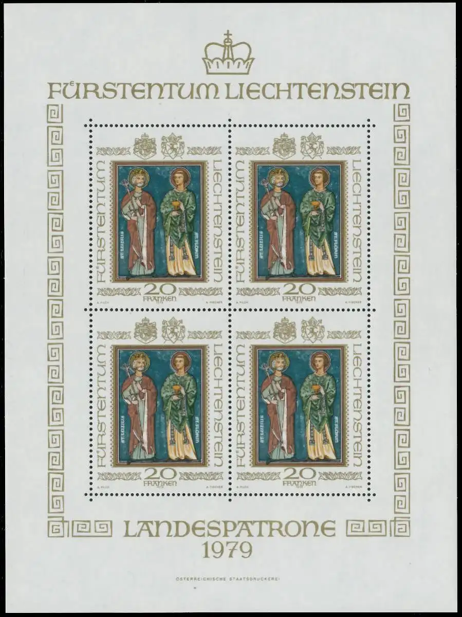 20 Fr. Wert Freimarkenausgabe Landespatrone im Kleinbogen