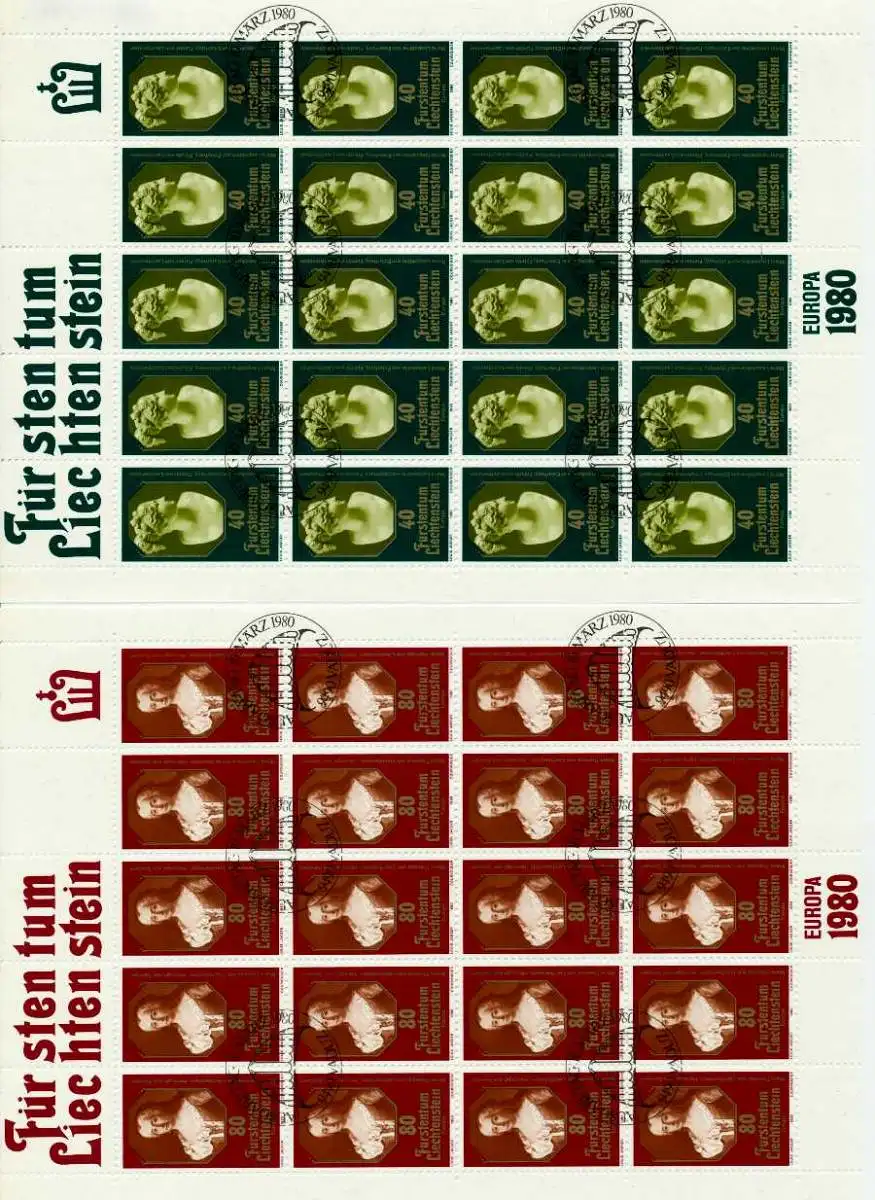 Ausgabe Europa 1980 im kpl. Kleinbogen, Ersttagssonderstempel