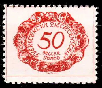 50 H Wert aus der Portomarkenausgabe Ziffern im Oval von 1920