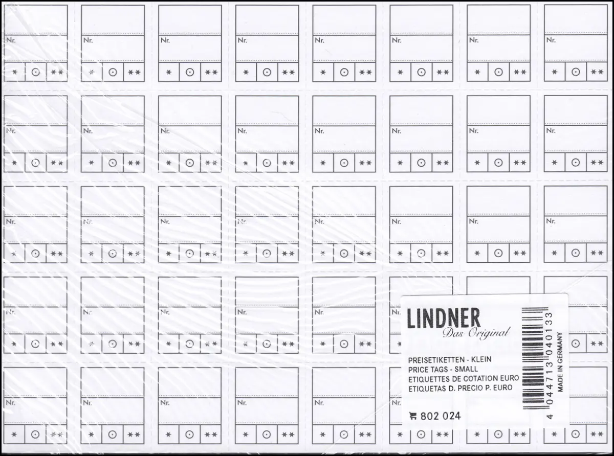 LINDNER Preisetiketten, klein 20 x 22 mm + Rand, Packung mit 1000 Stück