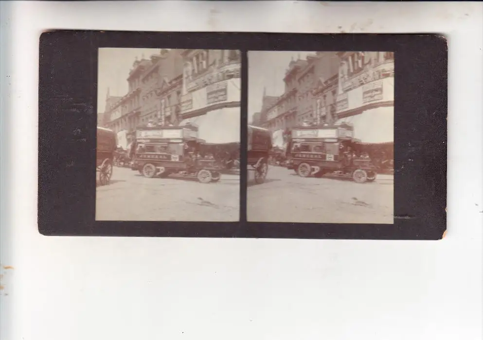 LONDON - Street scene, Bus , Stereo - Photo, ca. 1900