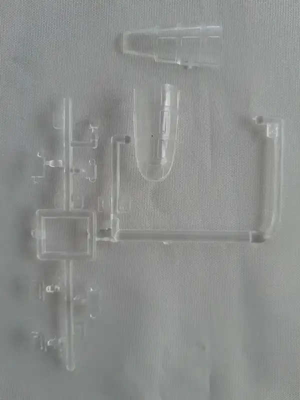 Einzelteile (Plastikbauteile) sind bis auf 2 Teile noch alle am Rahmen fixiert. Sichthülle wurde geöffnet.