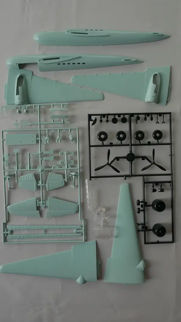 Einzelteile (Plastikbauteile) sind noch am Rahmen fixiert, einige Teile haben werkseitig keinen Rahmen.