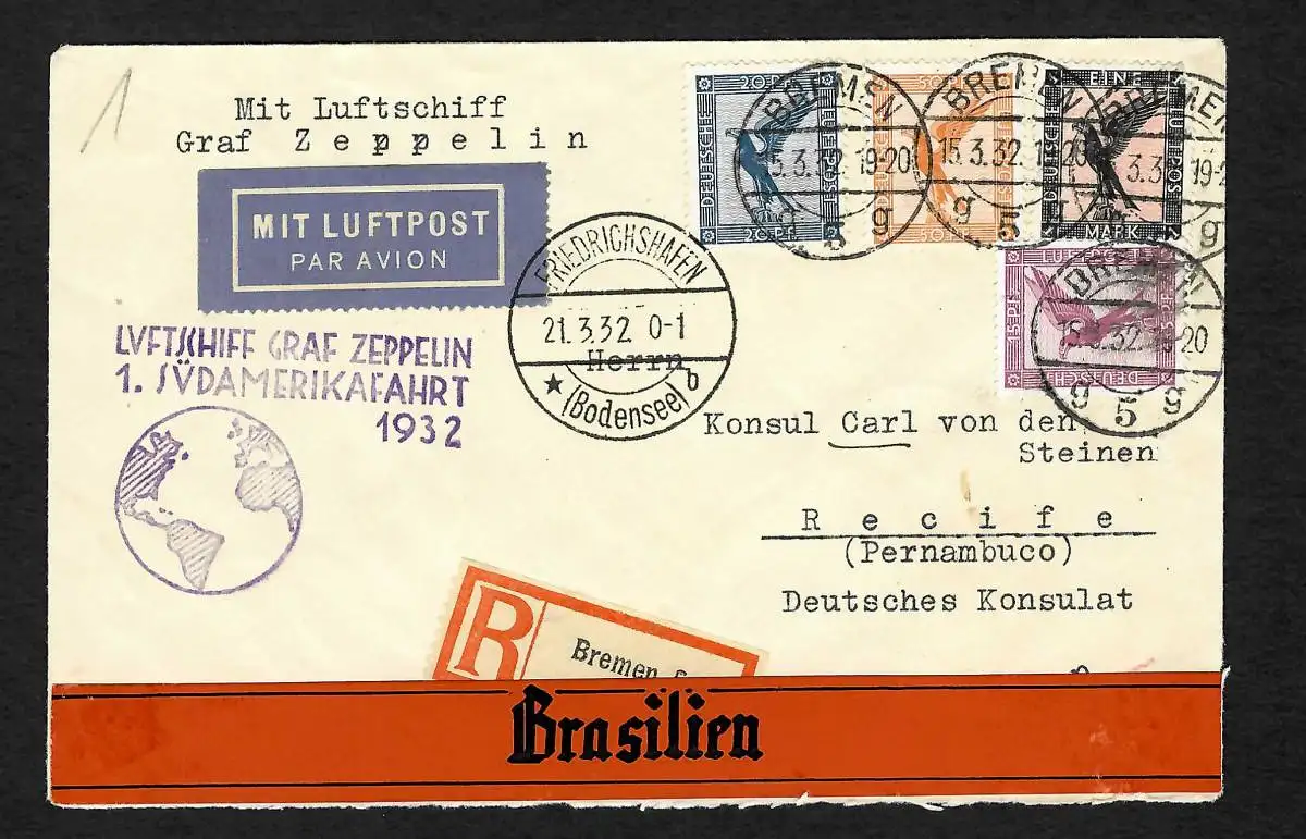 LZ127: R-Brief Friedrichshafen, Luftschiff Graf Zeppelin, 1.Südamerikafahrt 1932