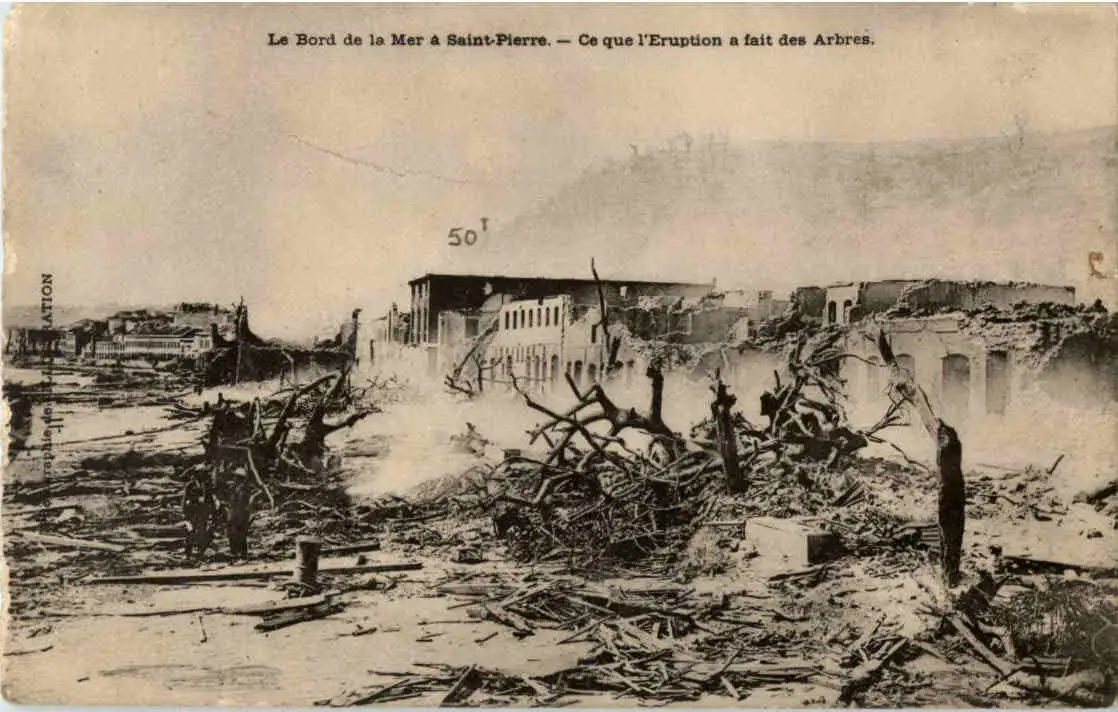 La Bord de la Mer a Saint Pierre - Eruption a fait des Arbres -42970