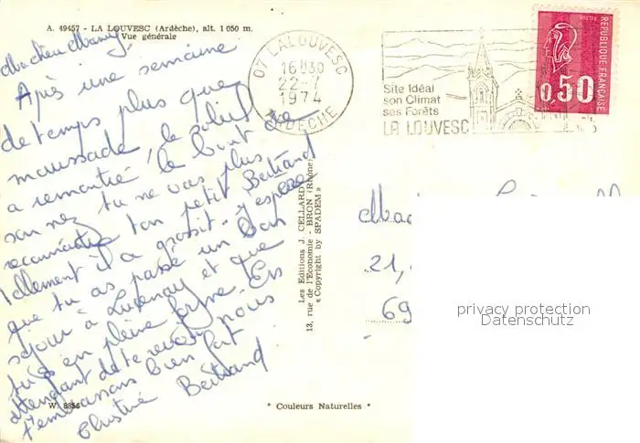 La_Louvesc Vue aérienne La_Louvesc postalisch gelaufen 1974 Erhaltung siehe scans [FriedD77] Frierer