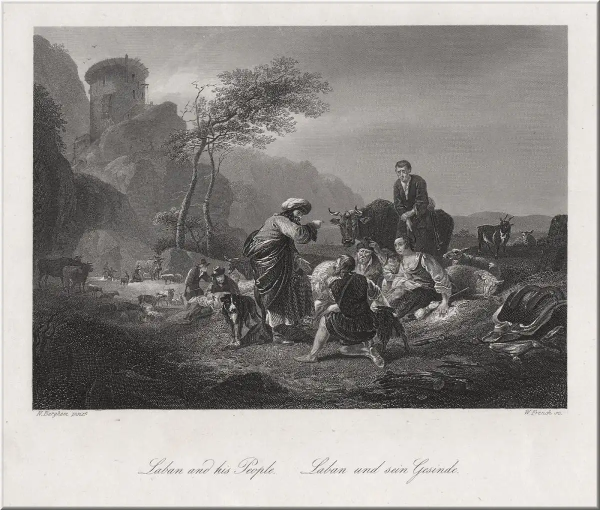Originaler Stahlstich von French n. Berghem um 1850