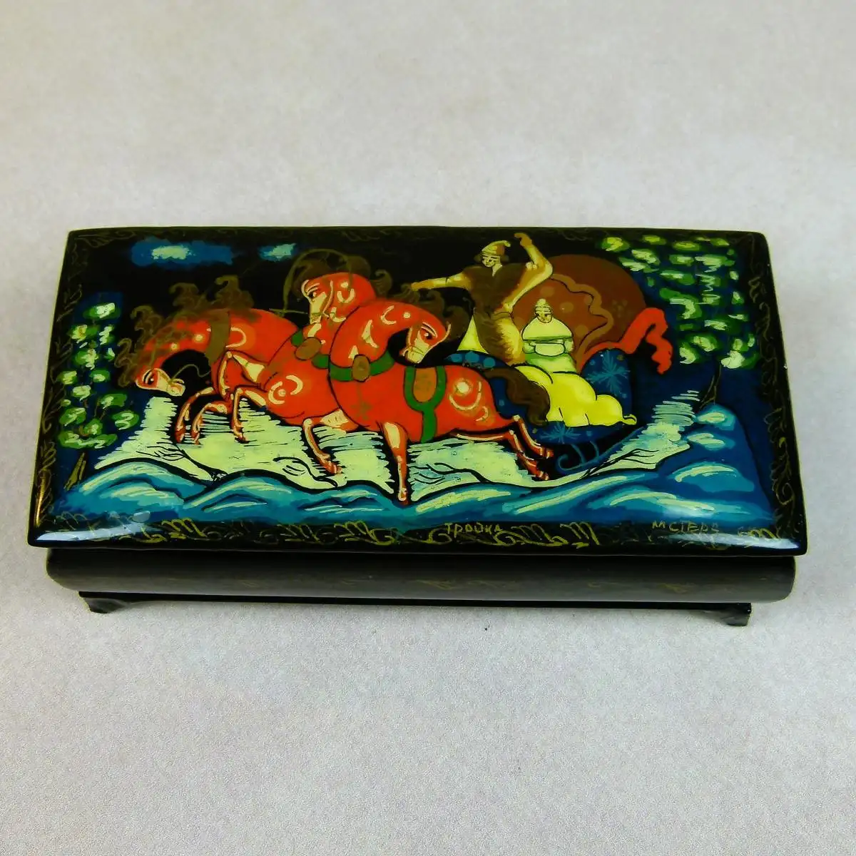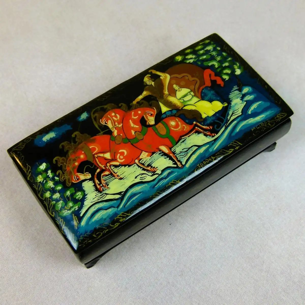 Palekh-Box,Miniaturmalerei,russische, Volkskunst,signiert,Sammlerstück,dekorative, Kunst,folkloristische, Kunst