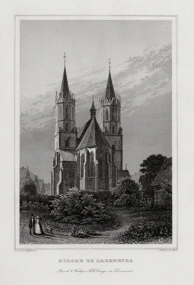 Ladenburg Kirche. Originaler Stahlstich Höfer um 1850