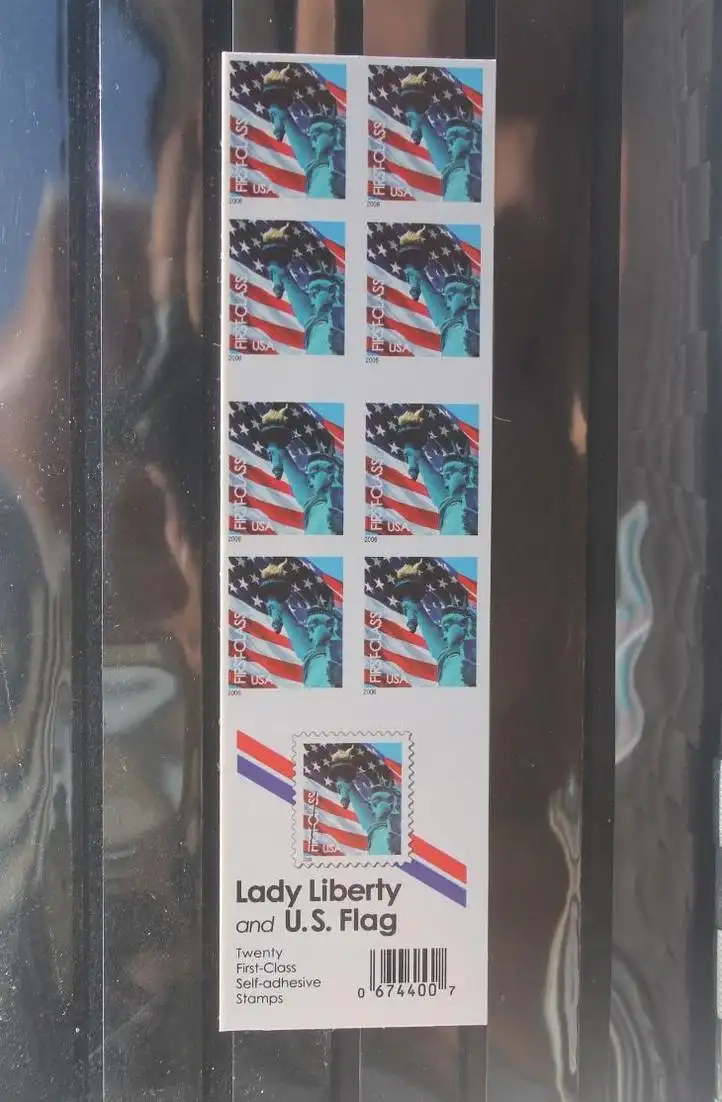 Lady Liberty and U.S. Flag; 20 First-Class Self-adhesive Stamps; 2006; lesen