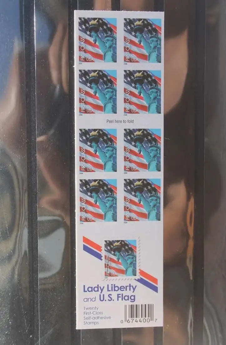 Lady Liberty and U.S. Flag; 20 First-Class Self-adhesive Stamps, 2006; lesen