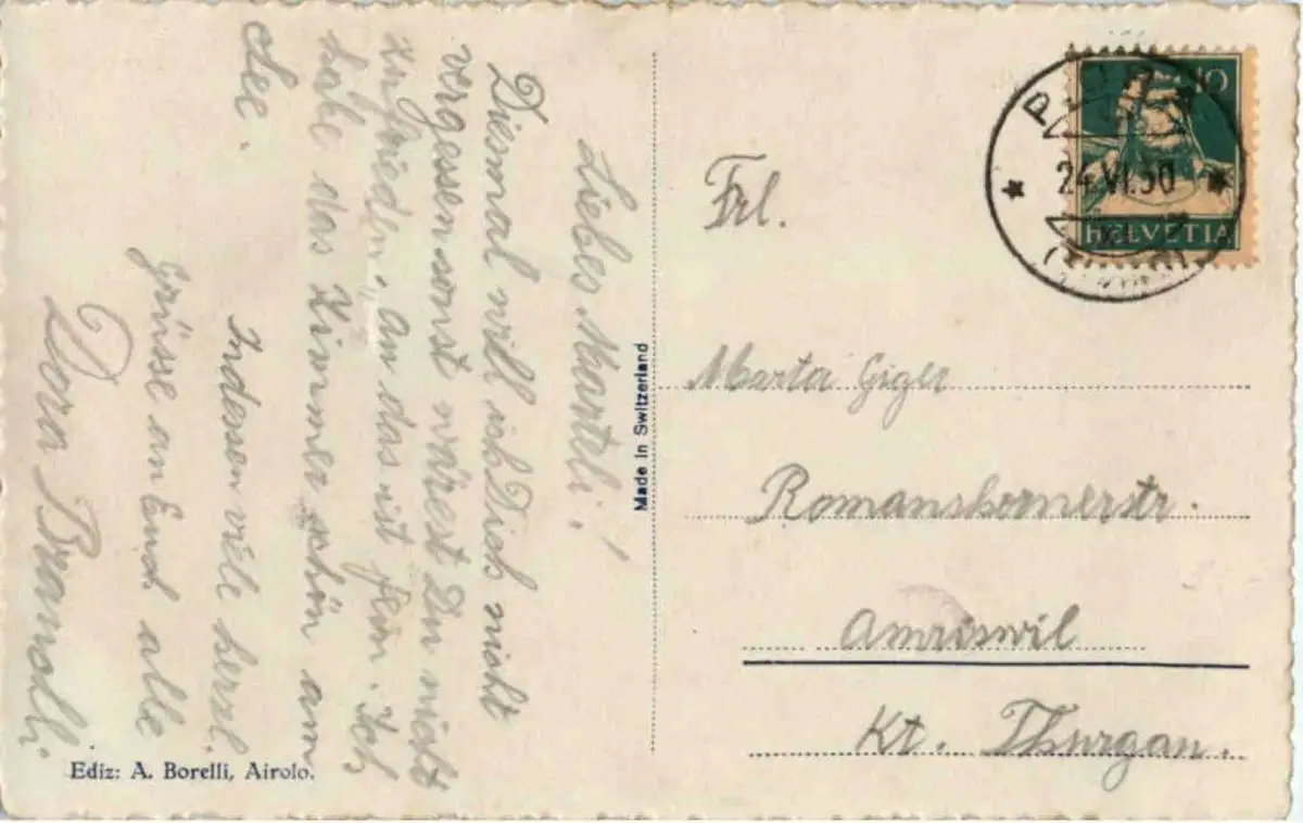 Danke. Alles Bestens. Können Sie mir allenfalls mitteilen, aus welchem Jahr die Postkarte stammt? Besten Dank.