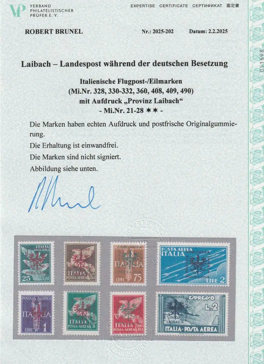 Laibach Ausgabe Flugpost-/Eilmarken, **, Attest Brunel