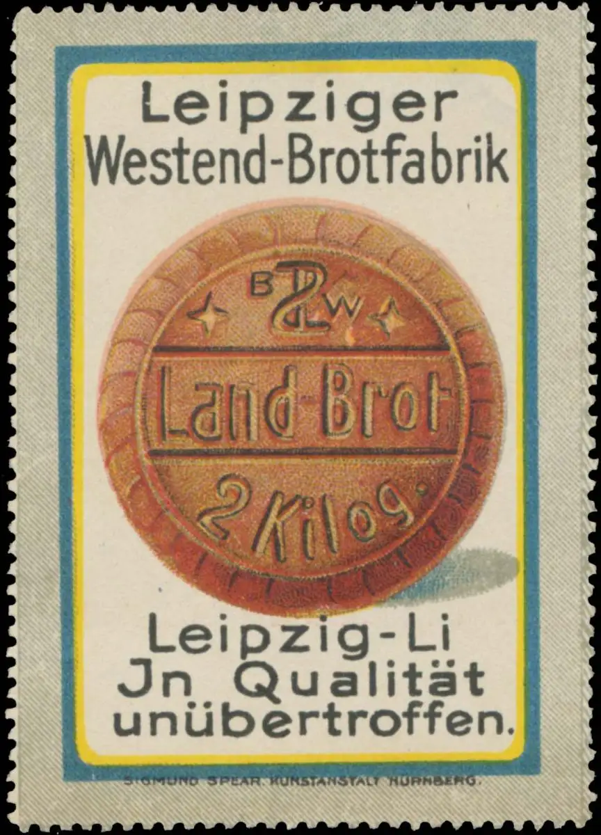 Bäckerei, Druck: Sigmund Spear, Nürnberg, Größe/Zustand: 7x5 , guter Zustand, Original alte Reklamemarke die seinerzeit für die Werbung benutzt wurde