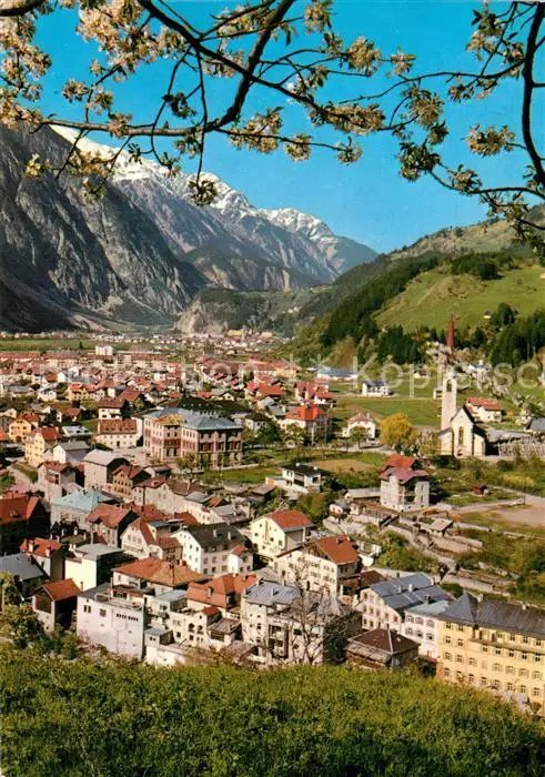 Landeck_Tirol Stadtpanorama Alpen Baumbluete Landeck Tirol postalisch gelaufen 1971 Erhaltung siehe scans [FriedD77] Frierer
