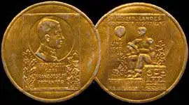 Papier-Medaille in Bronzefarbe, Protektor: Erzherzog Carl Franz Joseph, Größe/Zustand: 2x4 , leicht beschädigt, Original alte Reklamemarke die seinerzeit für die Werbung benutzt wurde
